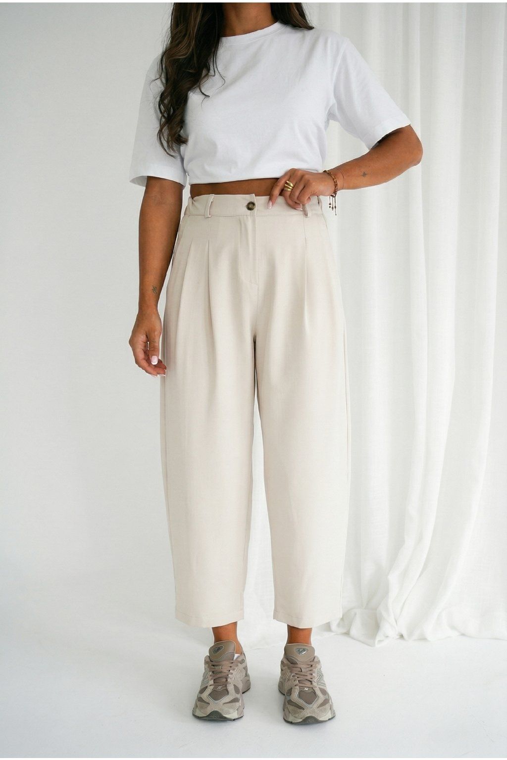 Pružný pas se přizpůsobí postavě a zajistí pohodlí po celý den, zatímco barel střih dodá outfitu trendy look.