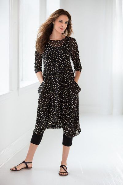 Pokud máte skříň plnou letních šatů, můžete některé využít. Zvolíte-li šaty barevné, sáhněte vždy po legínách jedné barvy. Myslete však na to, že k podzimu se více než letní šaty hodí ty, které jsou určeny danému ročnímu období. Podzimní šaty mohou mít krátký i dlouhý rukáv, výstřih i stojáček. Mohu být jednobarevné i pestré. Roli hraje hlavně jejich délka. Legíny kombinujte vždy se šaty v délce pod hýždě, maximálně do poloviny stehen. Pokud byste k legínám zvolili šaty po kolena, opticky by vám zkrátily nohy. A to jistě nechcete.