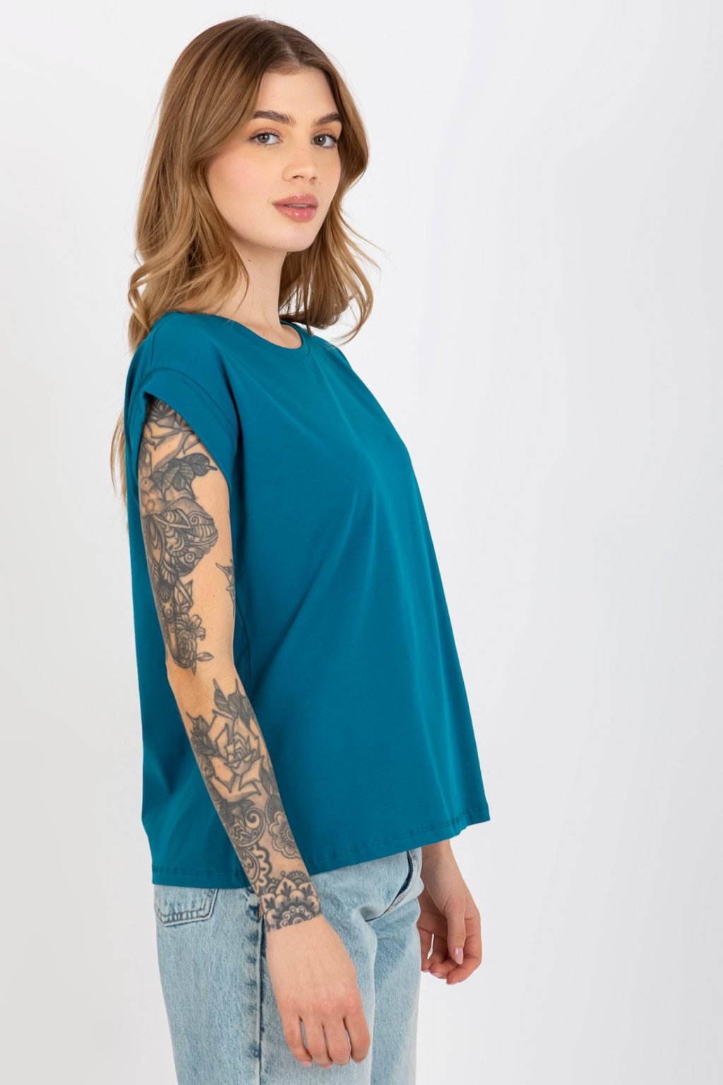 Přidejte tento základní kousek do svého šatníku - basic bavlněné tričko s krátkými rukávy a kulatým výstřihem. Nabízí pohodlí a jednoduchost pro každodenní nošení, zatímco jeho čistý design umožňuje bezproblémovou kombinovatelnost s jakýmkoli outfitem. Ideální pro neformální vzhled.