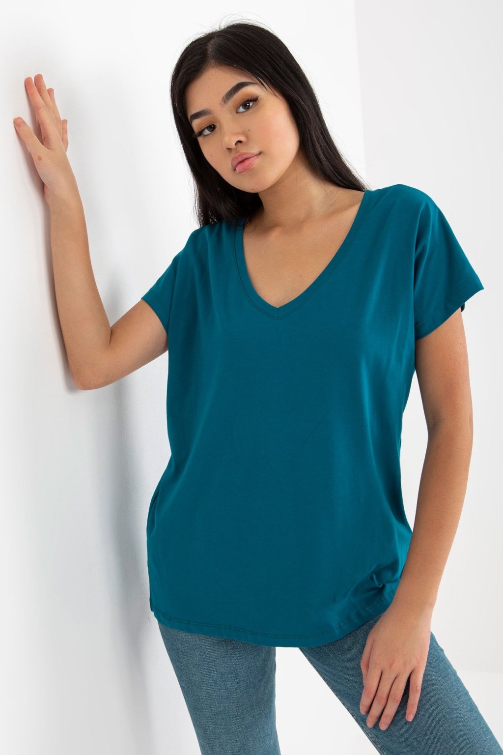Stylové dámské triko, které je must-have kouskem každého šatníku. S krátkými rukávy a elegantním výstřihem do "V". Nejzajímavější je však detail na zádech - svislé sešití tvořící pruh, které přidává na originalitě. Vyrobeno z bavlněného materiálu, je ideální pro každodenní nošení a skvěle se hodí k džínům i sukni.