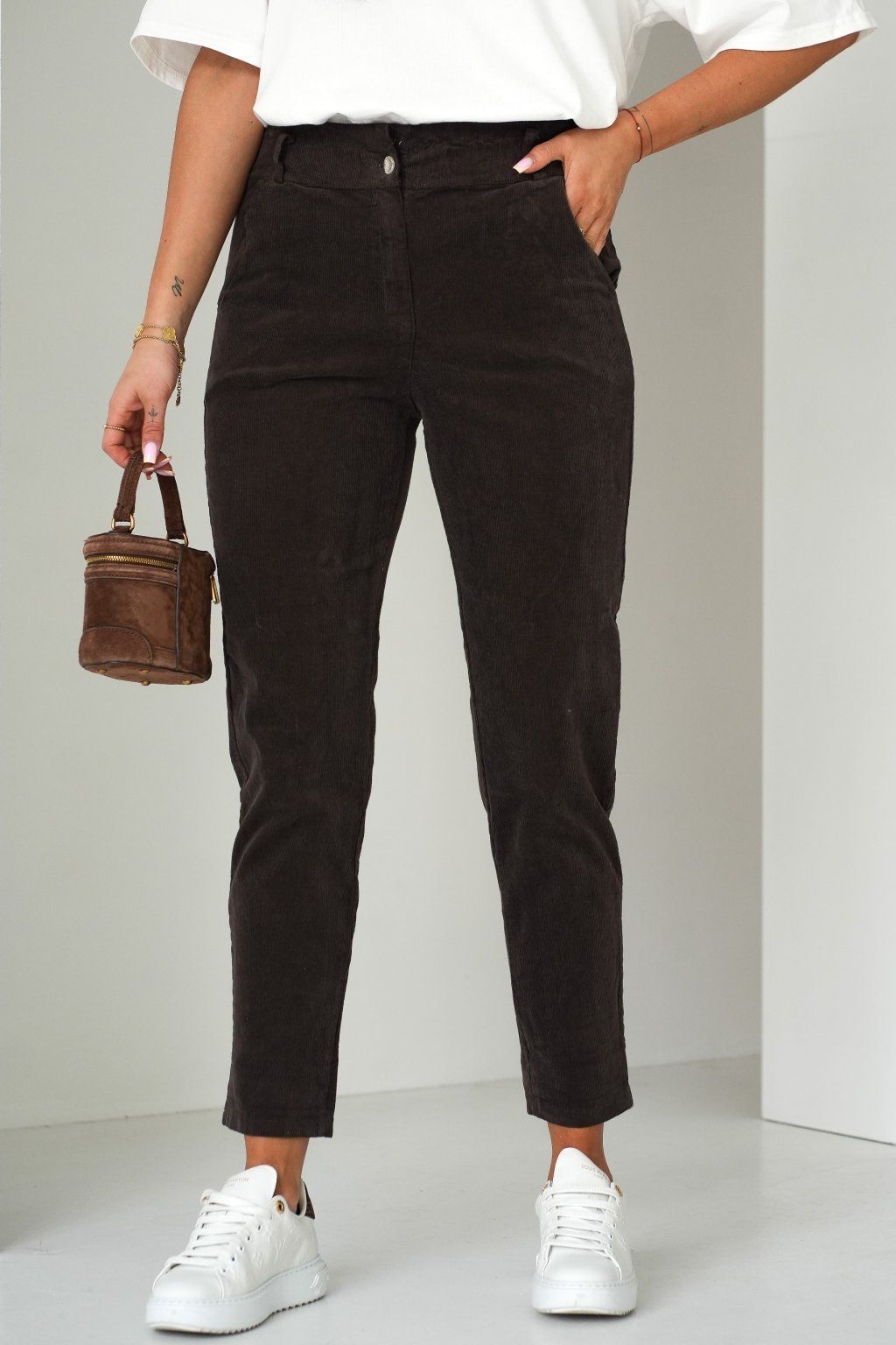 Jemný manšestrový povrch dodává kalhotám strukturu a styl, který snadno sladíš s casual i elegantním outfitem. Zapínání na knoflík v pase zajišťuje klasický a čistý vzhled.