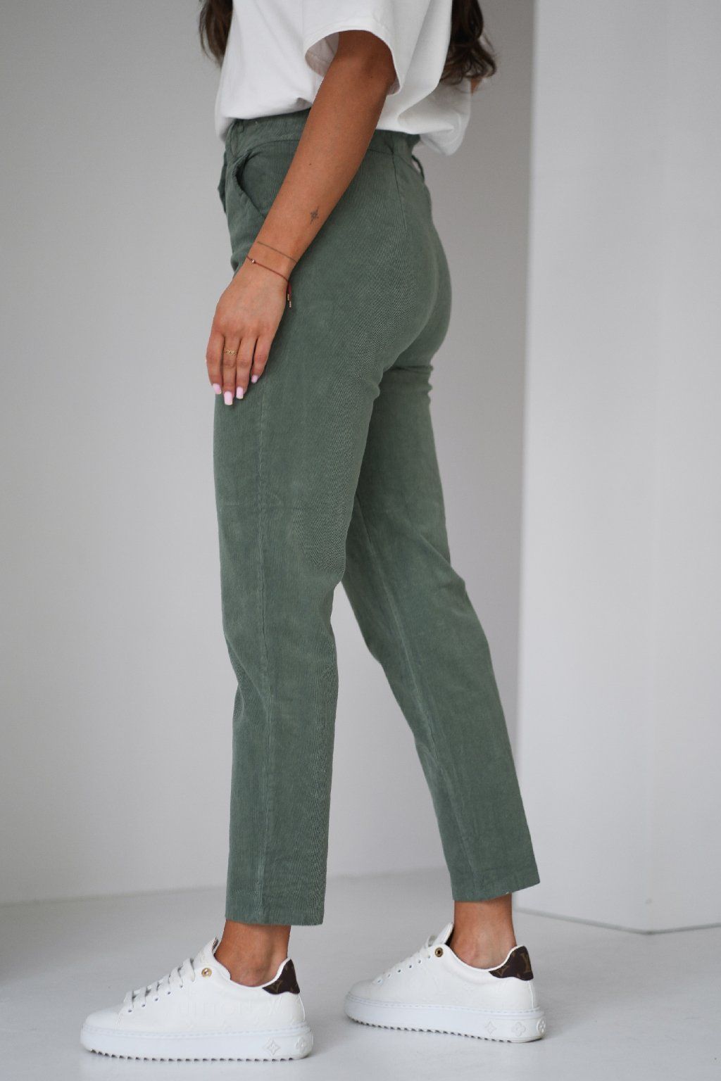 Jemný manšestrový povrch dodává kalhotám strukturu a styl, který snadno sladíš s casual i elegantním outfitem. Zapínání na knoflík v pase zajišťuje klasický a čistý vzhled.