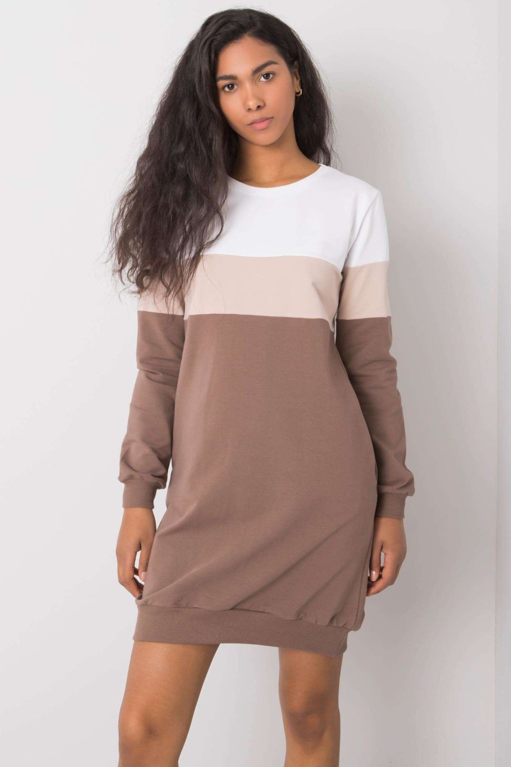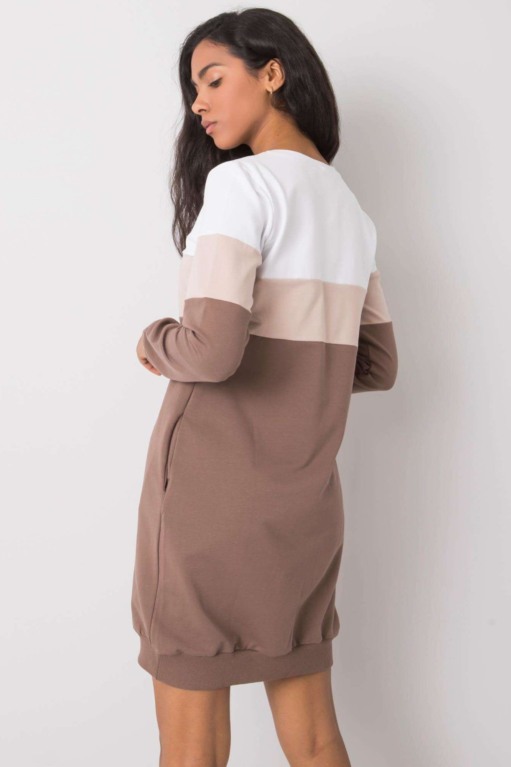 Mikinové šaty Feliciana hnědo-bílé