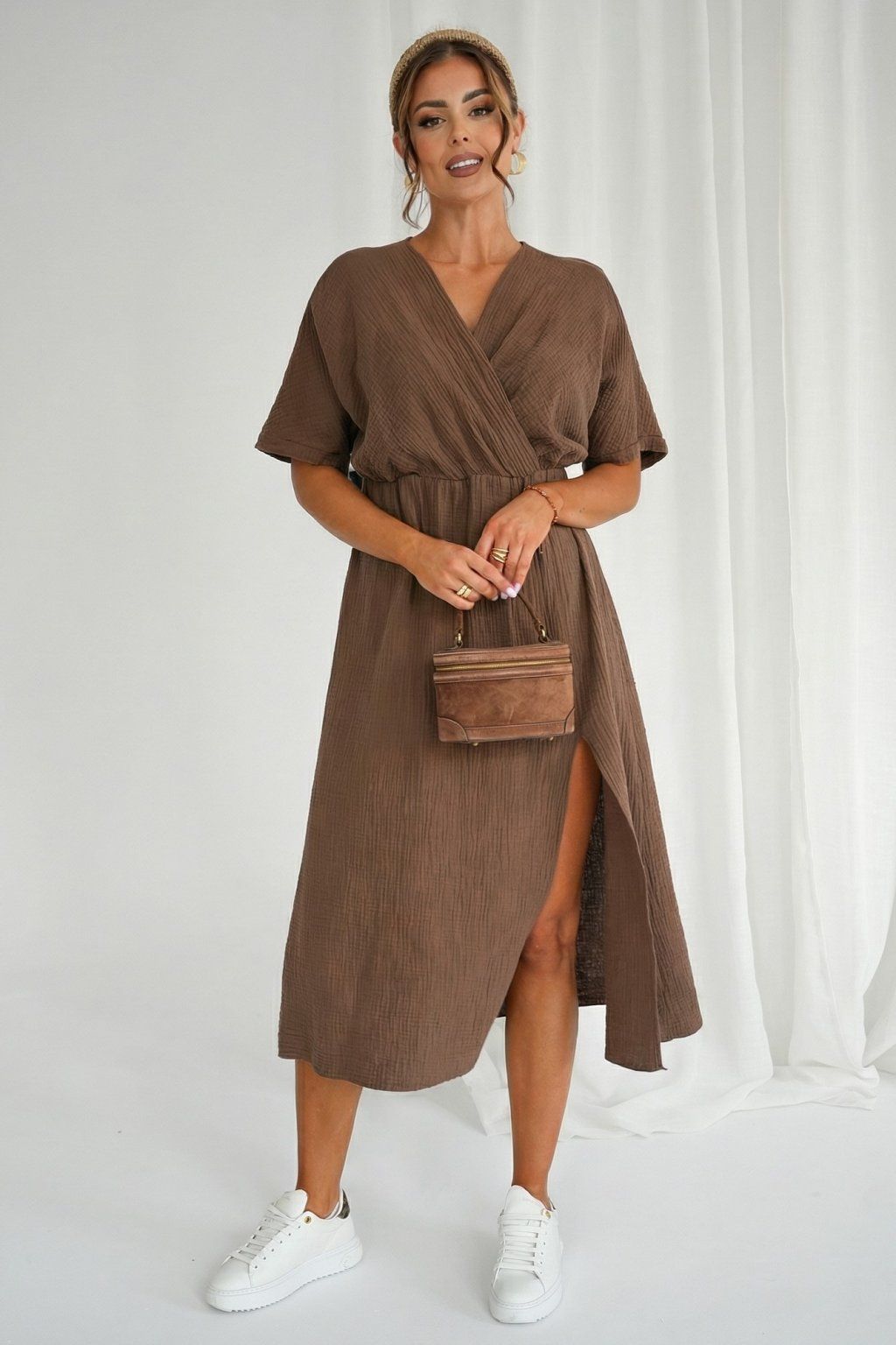 Mušelínové šaty Aria hnědé