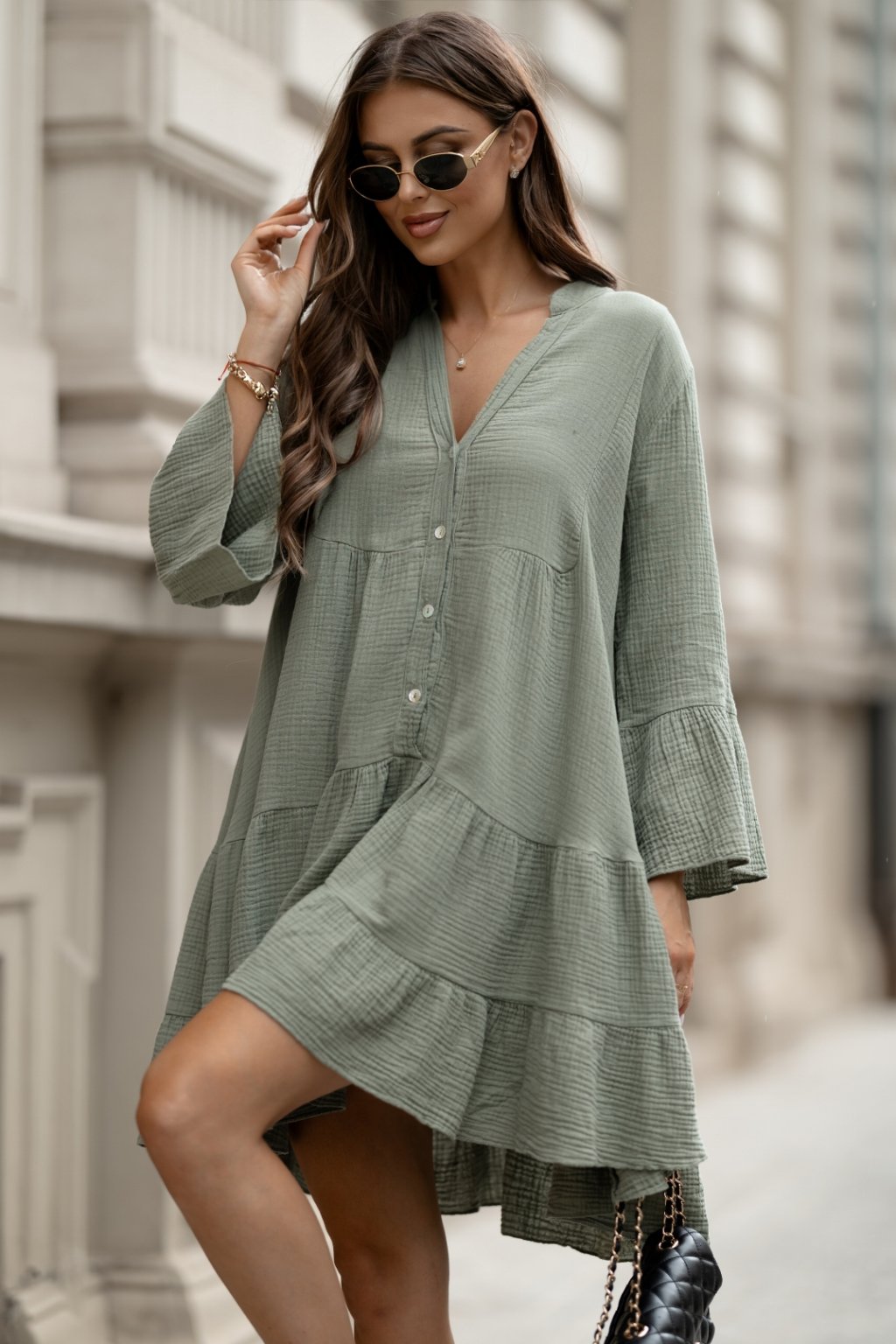 Mušelínové šaty Melisa khaki