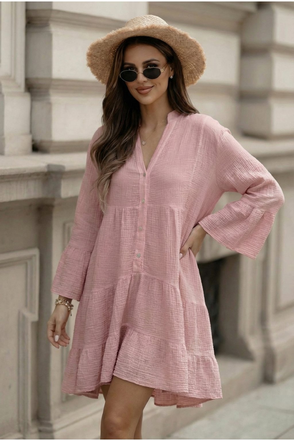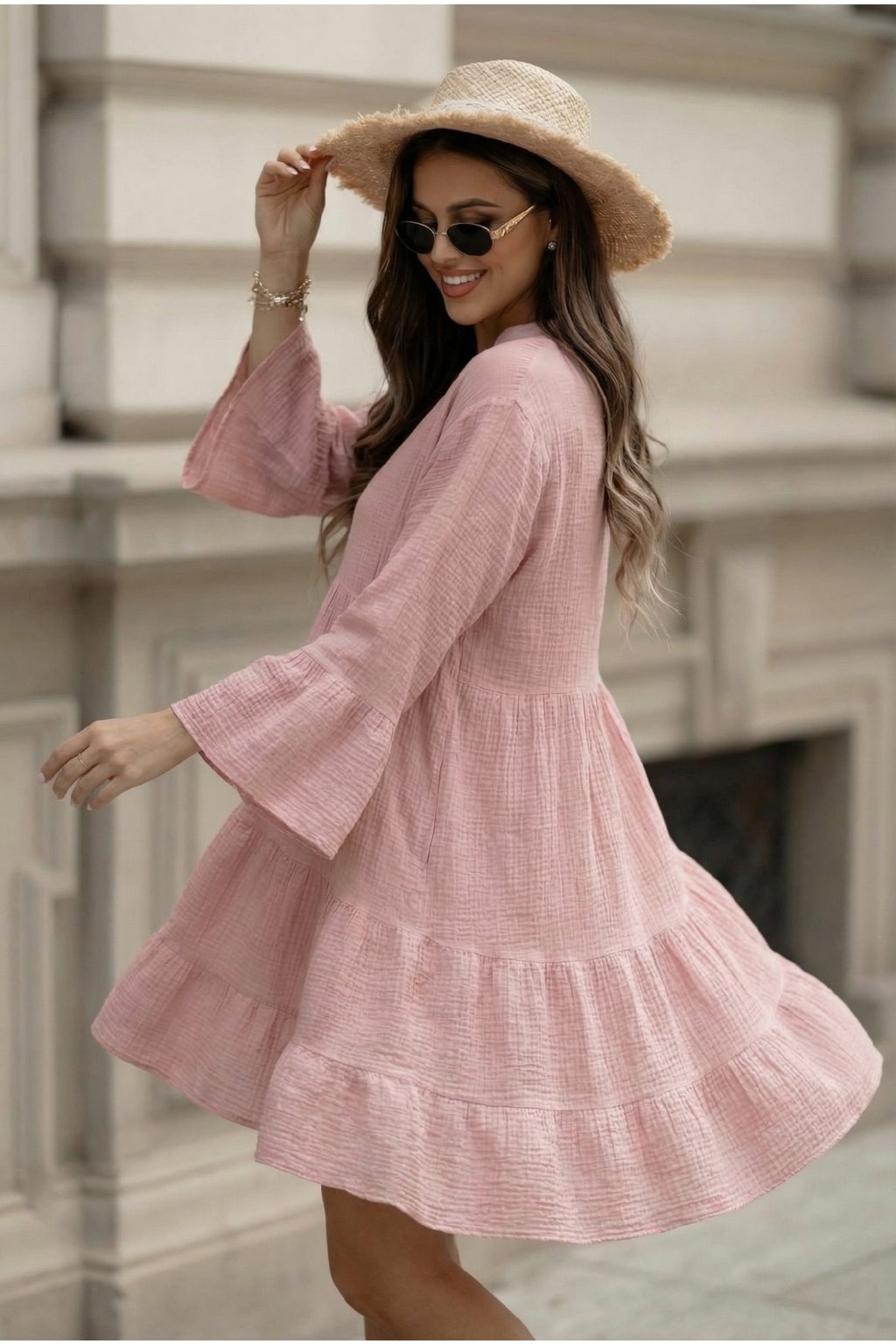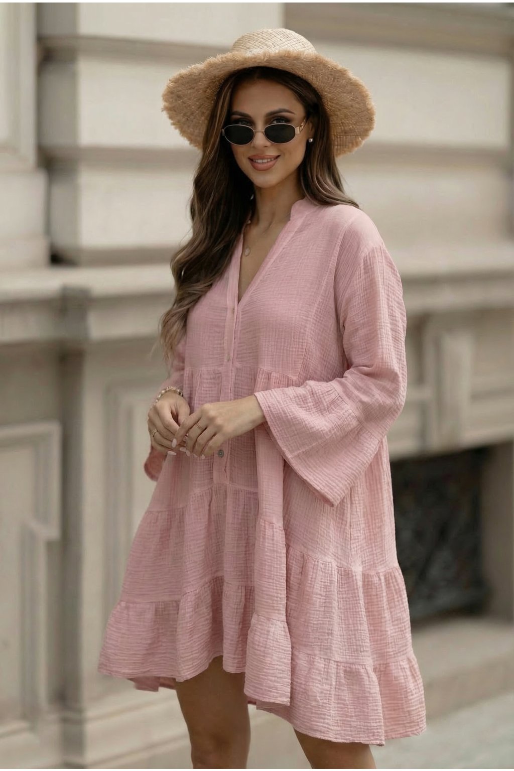 Mušelínové šaty Melisa pudrově růžové