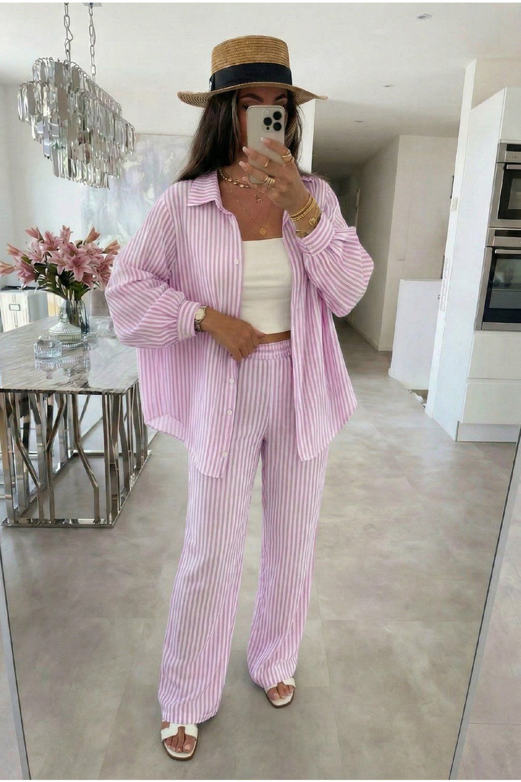 Mušelínový komplet Positano pink stripes