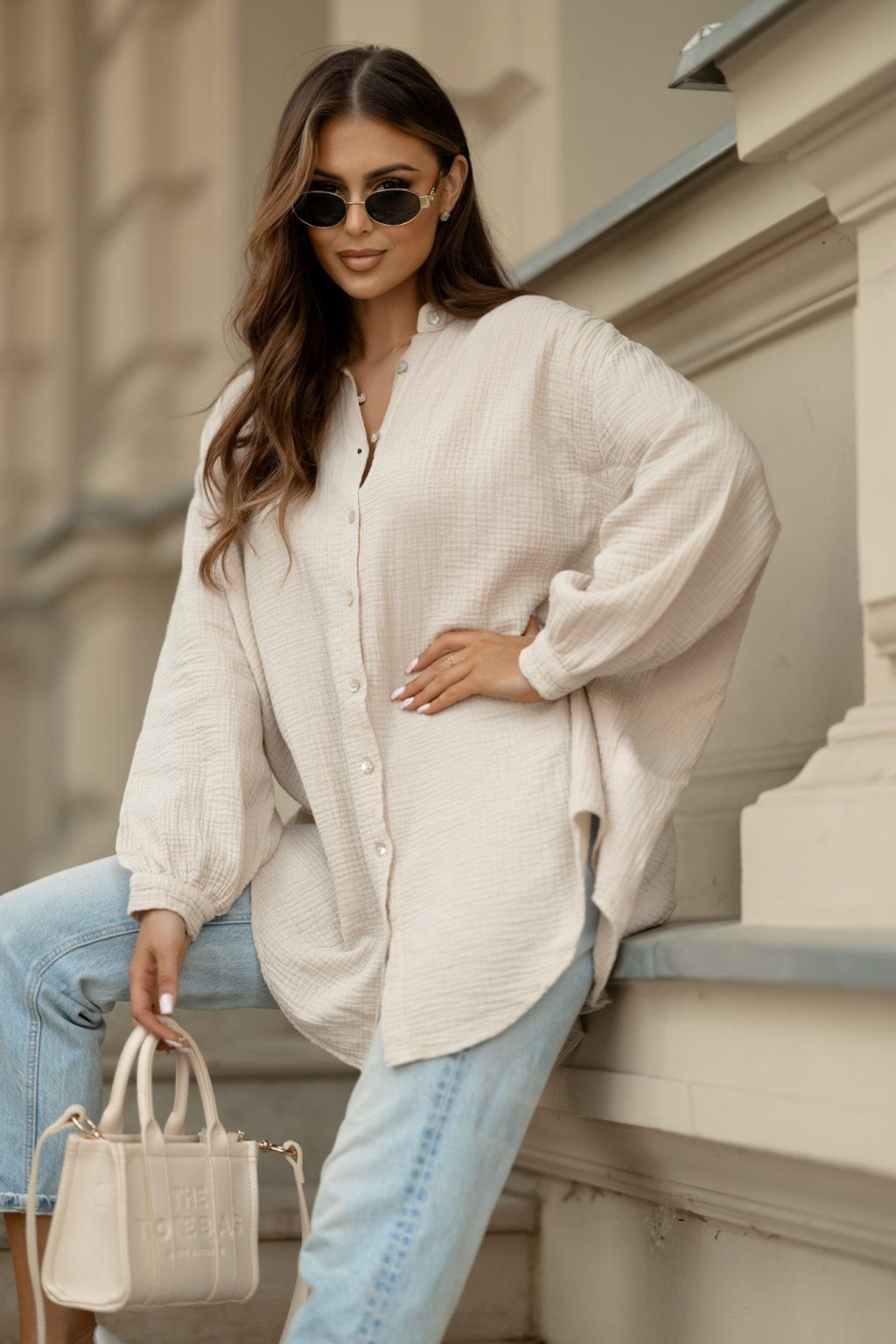 Oversize mušelínová košile Chloe béžová