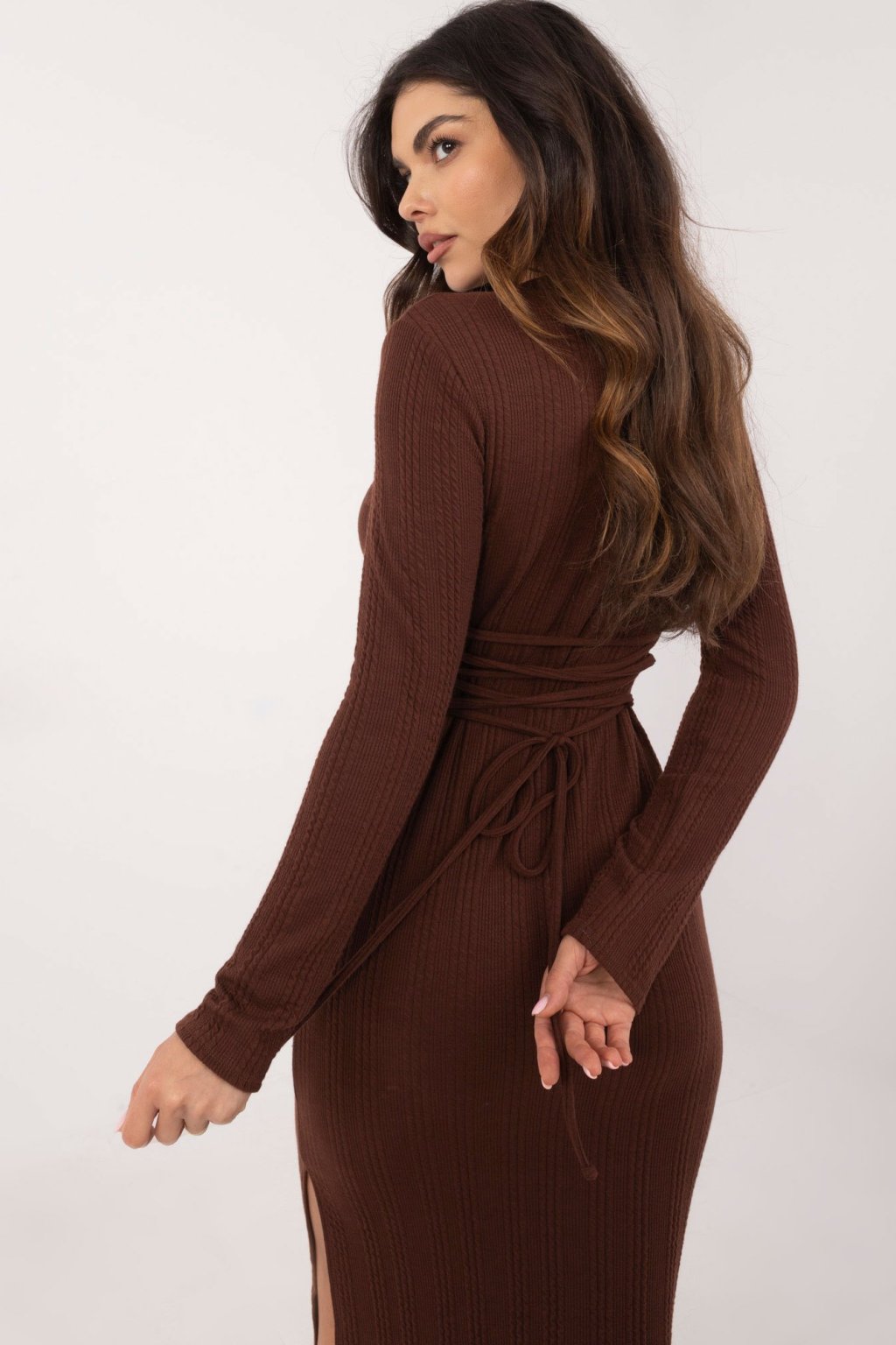 Šaty s dlouhým rukávem, rozparkem a vázáním na zádech.