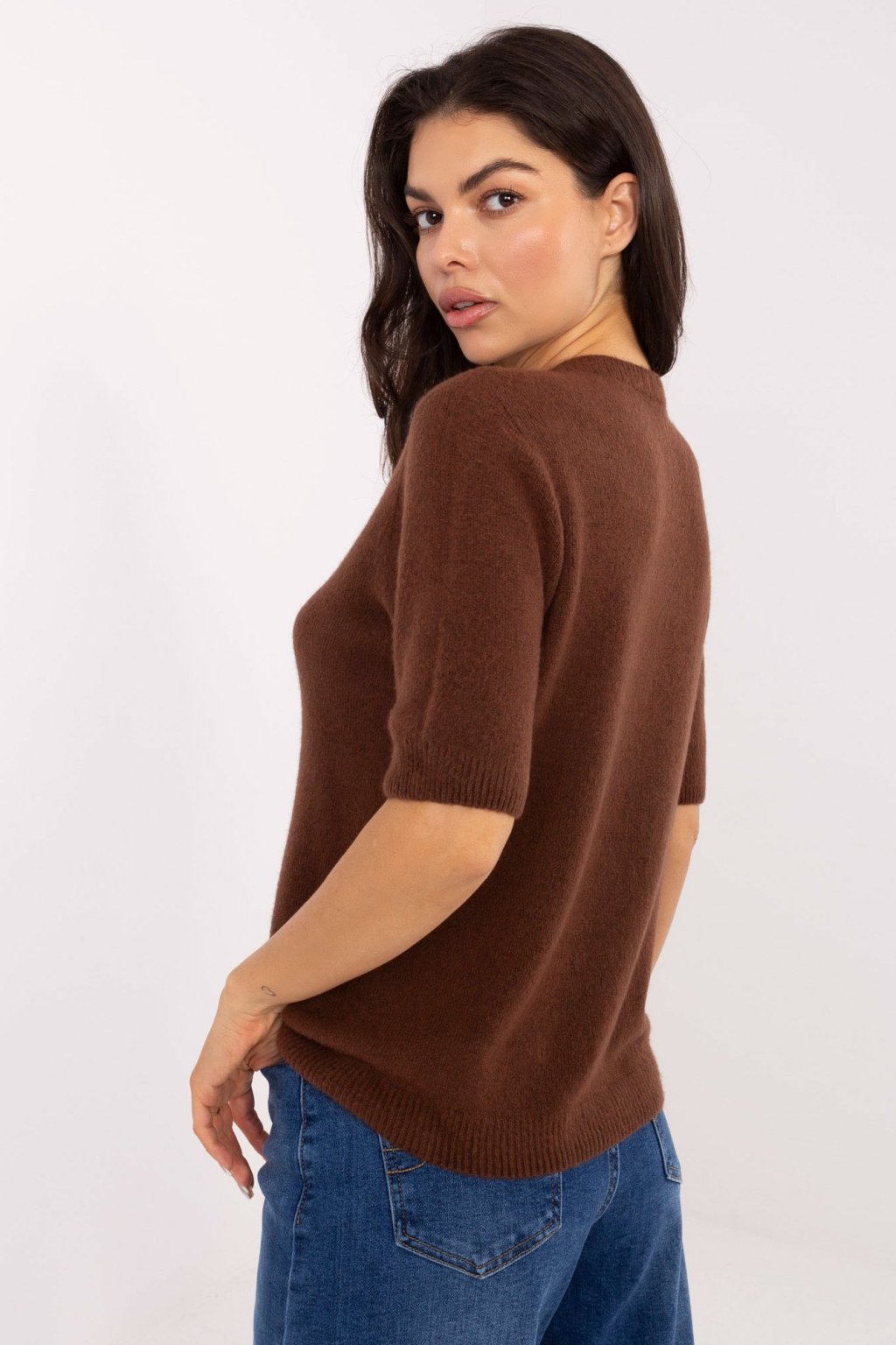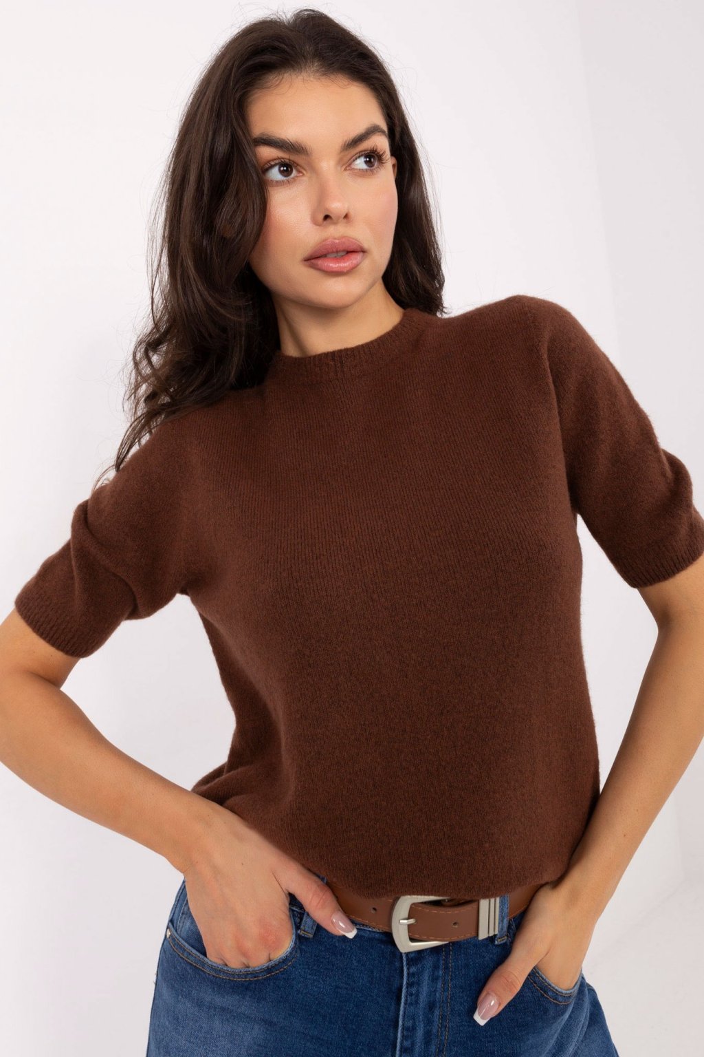 Svetřík s krátkým rukávem hnědý