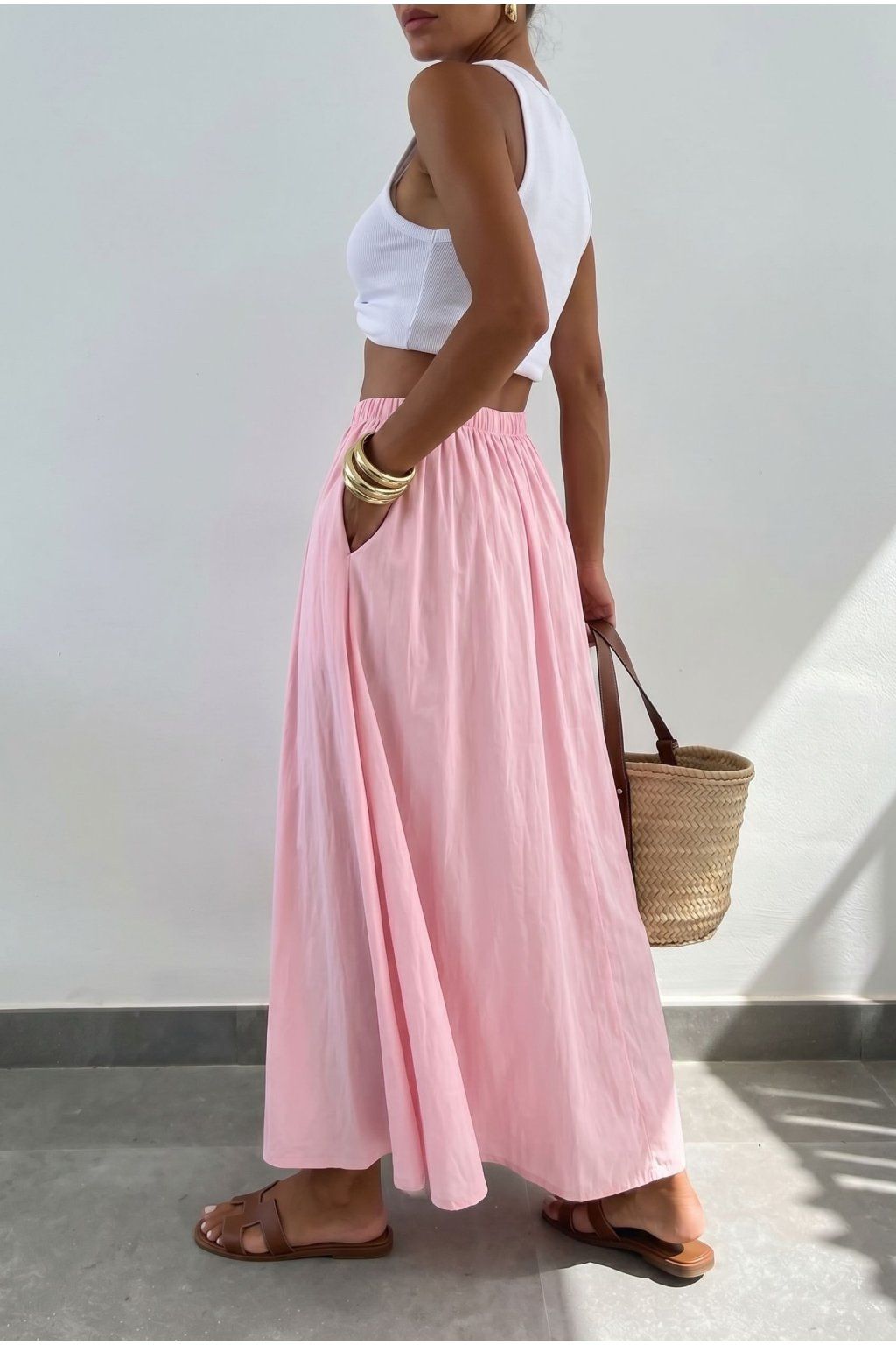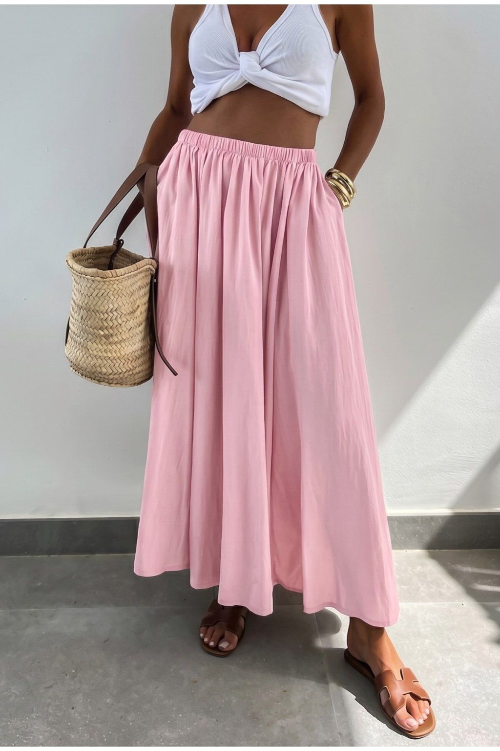 Dlouhá sukně z jemné viskózy krásně splývá a vytváří elegantní siluetu, která se hodí jak na běžný den, tak i na letní příležitosti.