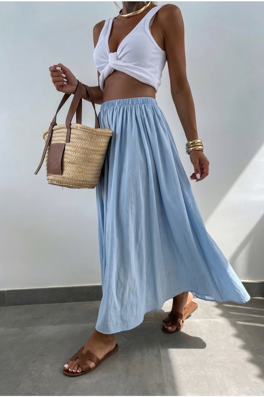 Dlouhá sukně z jemné viskózy krásně splývá a vytváří elegantní siluetu, která se hodí jak na běžný den, tak i na letní příležitosti.