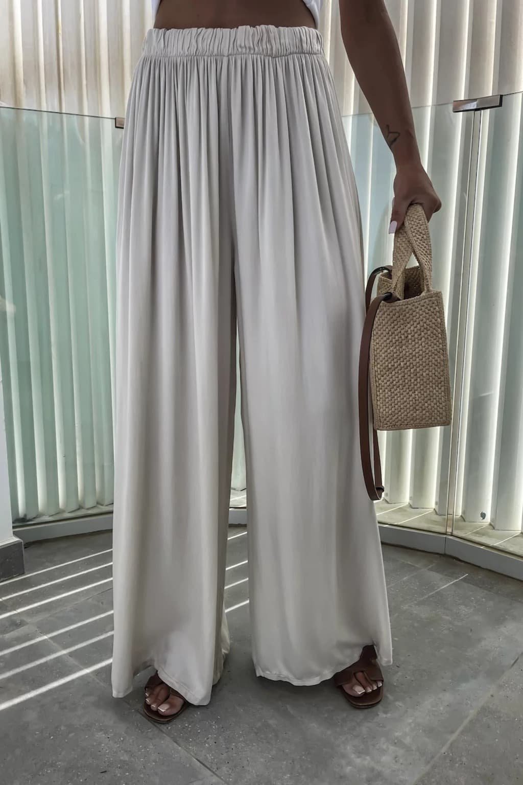 Elegantní a pohodlné kalhoty z příjemné 100% viskózy. Lehký materiál zaručuje vzdušnost a komfort během celého dne. Moderní střih s širokými nohavicemi dodává kalhotám nadčasový vzhled, který skvěle doplní každý šatník. HIT této sezony.