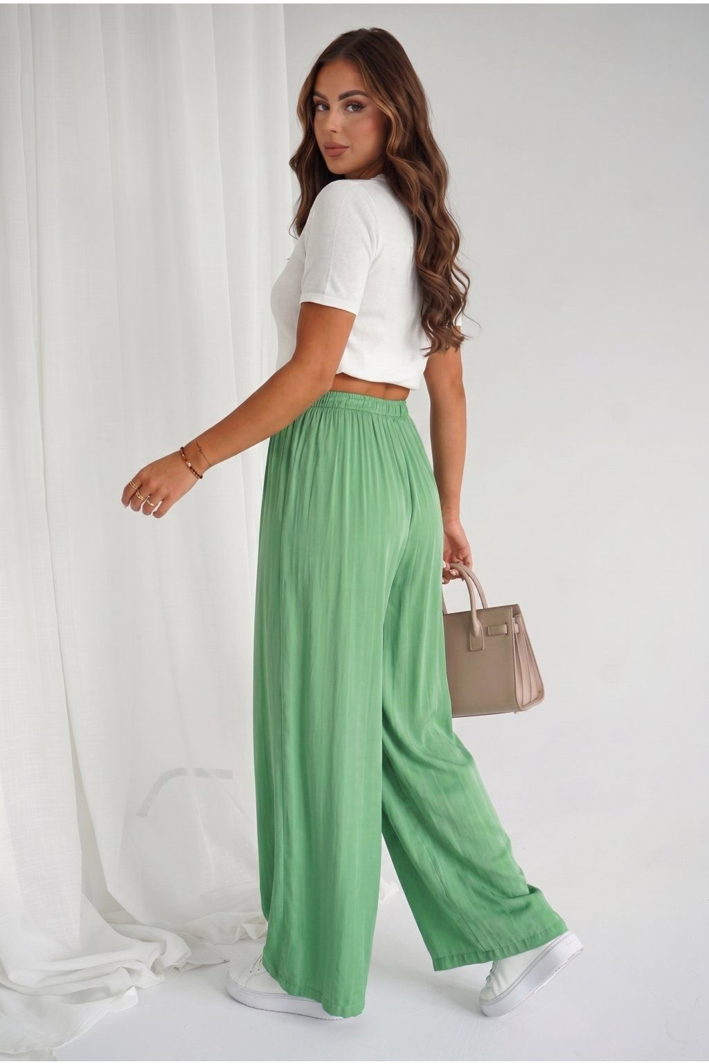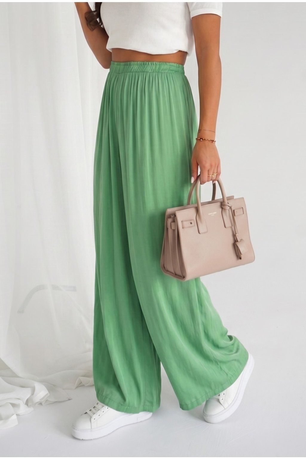 Elegantní a pohodlné kalhoty z příjemné 100% viskózy. Lehký materiál zaručuje vzdušnost a komfort během celého dne. Moderní střih s širokými nohavicemi dodává kalhotám nadčasový vzhled, který skvěle doplní každý šatník. HIT této sezony.